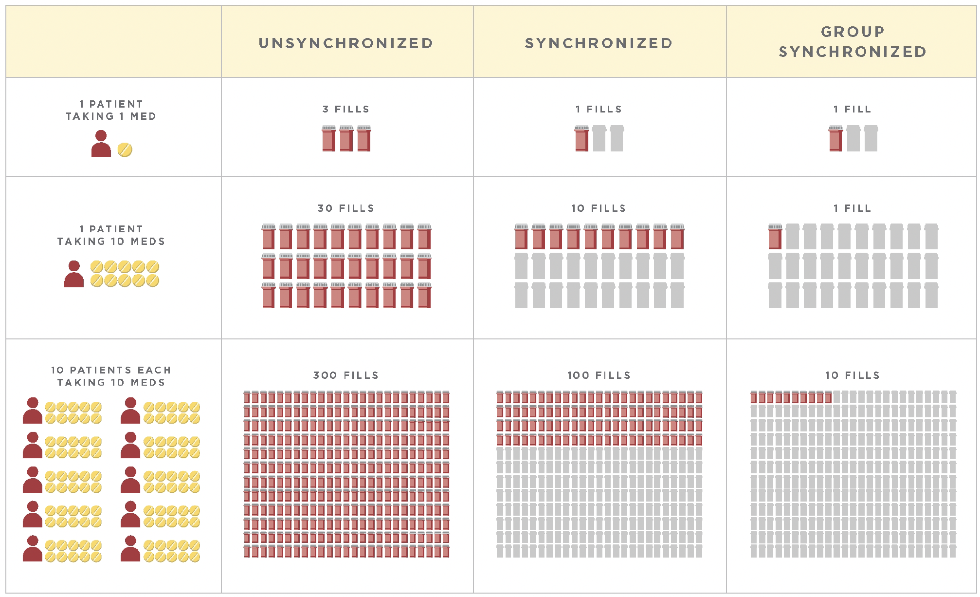 Group Synchronization focuses the entire pharmacy team on filling the right medication at the right time, no more and no less.